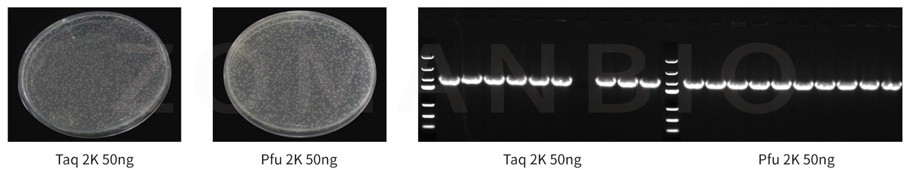 陽性率高:2K以下片段陽性率>90%,可連接低至5ng/μl片段;成功連接長達(dá)12Kb片段。