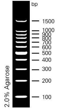 本產(chǎn)品是由11條線性雙鏈DNA組成,適用于瓊脂糖凝膠電泳中DNA條帶的分析。本產(chǎn)品為即用型產(chǎn)品,已含有1×loading buffer,可根據(jù)實(shí)驗(yàn)需要,直接取2-5μl電泳,使用方便,電泳圖像清晰。本產(chǎn)品中11條帶為100,200,300,400,500,600,700,800,900,1000,1500bp。其中500bp條帶約為100ng/5μl,顯示加亮帶,其余條帶濃度約為50ng/5μl。