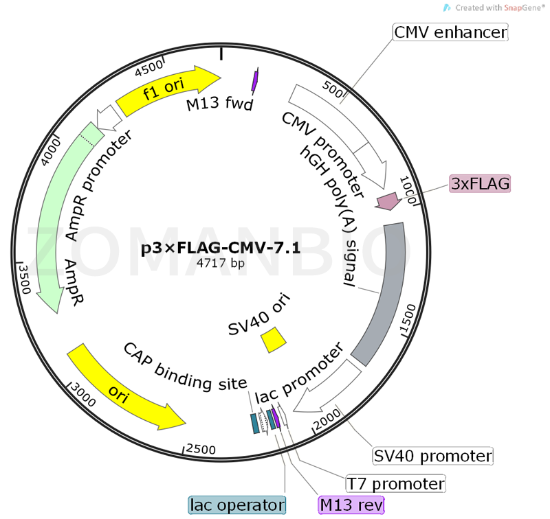 產(chǎn)品名稱:p3×FLAG-CMV-7.1質(zhì)粒
