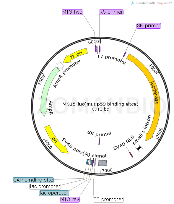 質(zhì)粒序列請(qǐng)下載:ZK501MG15-luc (mut p53 binding sites) 哺乳報(bào)告質(zhì)粒.txt