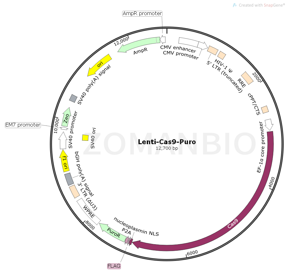 質(zhì)粒序列請下載:ZK683Lenti-Cas9-Puro哺乳編輯質(zhì)粒.txt