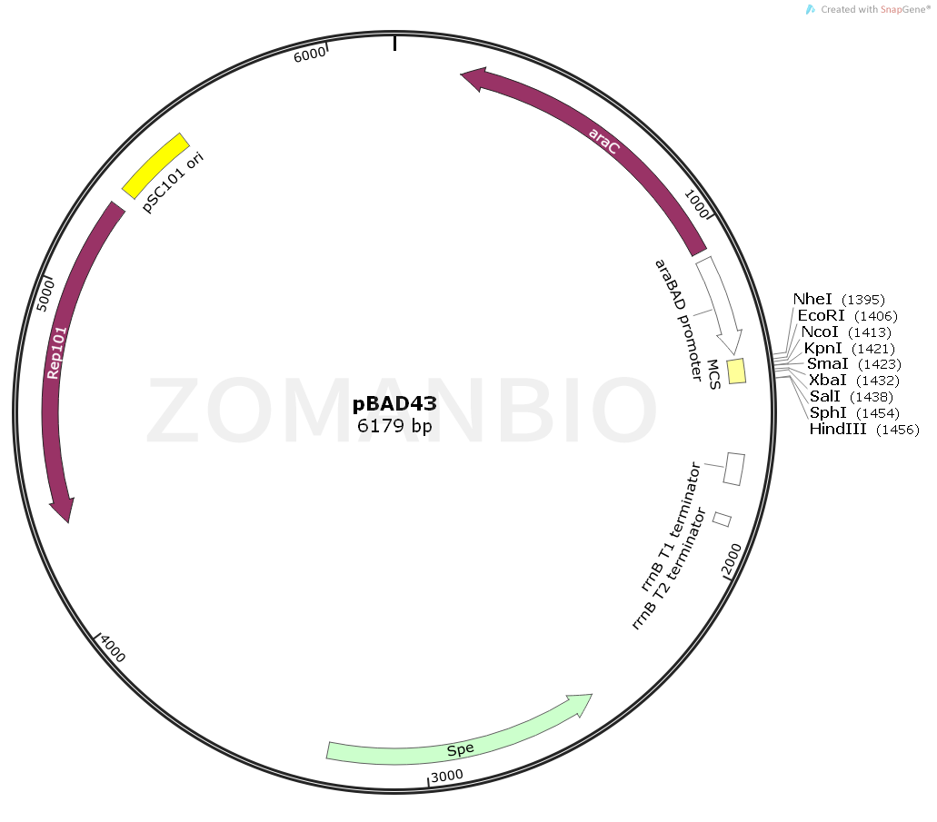 pBAD43是一個(gè)大腸桿菌pBAD系列表達(dá)質(zhì)粒。