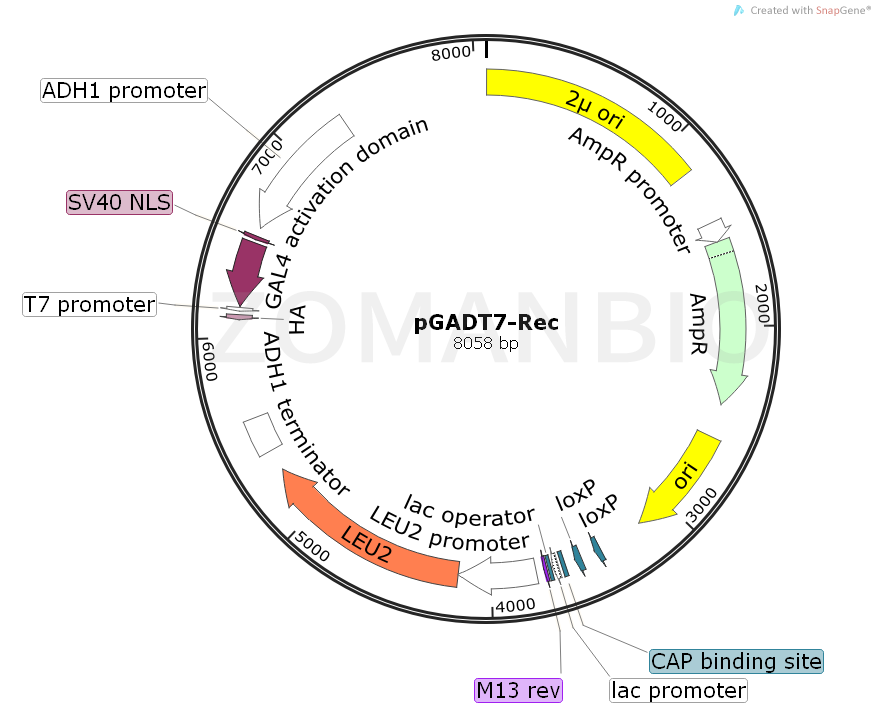質(zhì)粒分類: | 酵母系列,酵母單雜交載體 |