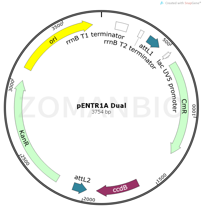 pENTR1A Dual是一個Gateway系統(tǒng)入門克隆質(zhì)粒。