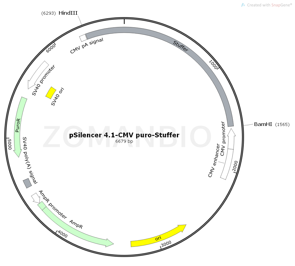 pSilencer 4.1-CMV puro-Stuffer是一個(gè)哺乳細(xì)胞干擾RNA表達(dá)質(zhì)粒。