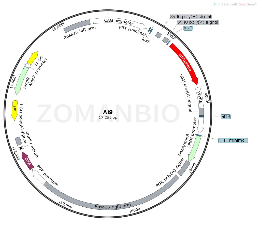 Ai9是一個(gè)哺乳細(xì)胞紅色熒光蛋白表達(dá)質(zhì)粒。。