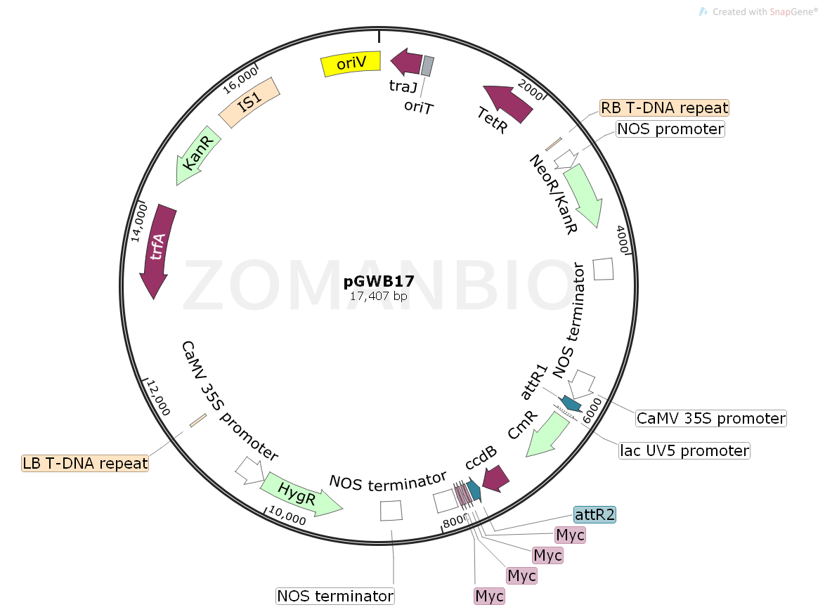 pGWB17是一個GateWay系列的植物表達質(zhì)粒。