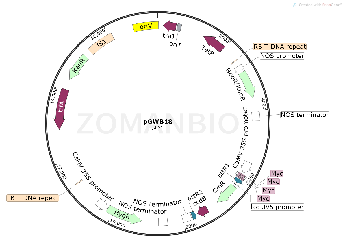 pGWB18是一個GateWay系列的植物表達質(zhì)粒。