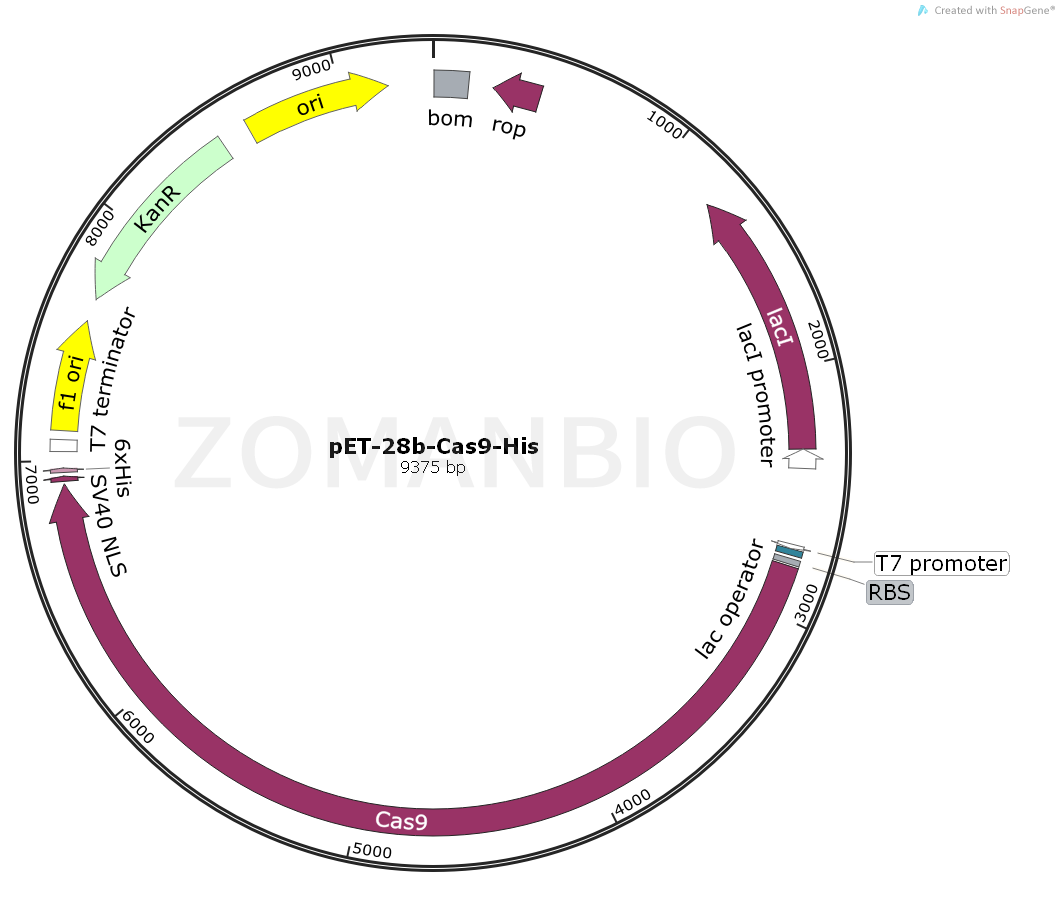 質粒序列請下載:ZK2085 pET-28b-Cas9-His大腸編輯質粒.txt