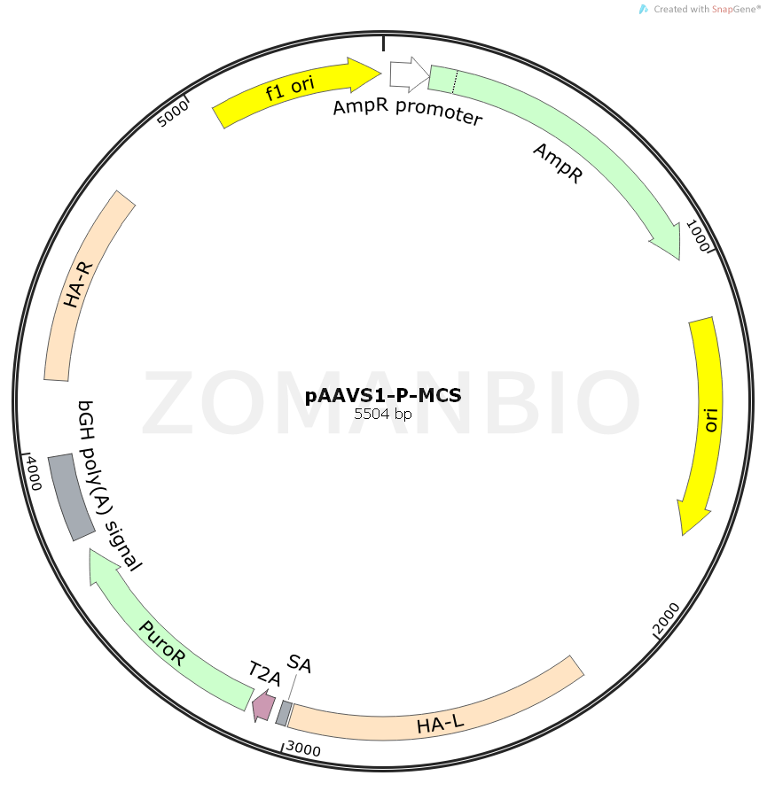 ZK2091 pAAVS1-P-MCS哺乳同源臂敲入質(zhì)粒.txt