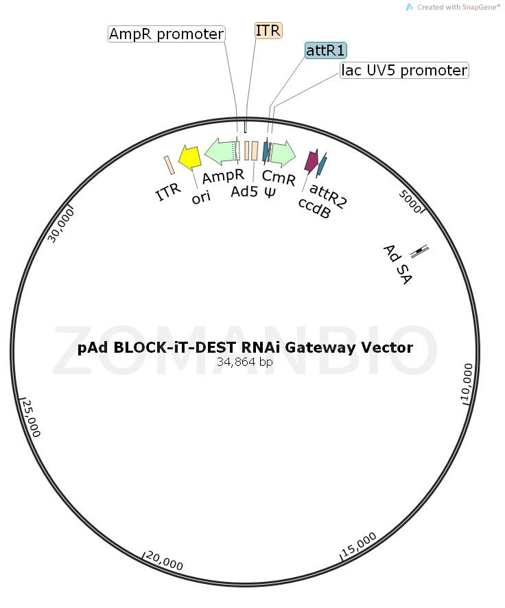 pAd/BLOCK-iT-DEST RNAi Gateway Vector腺病毒質粒
